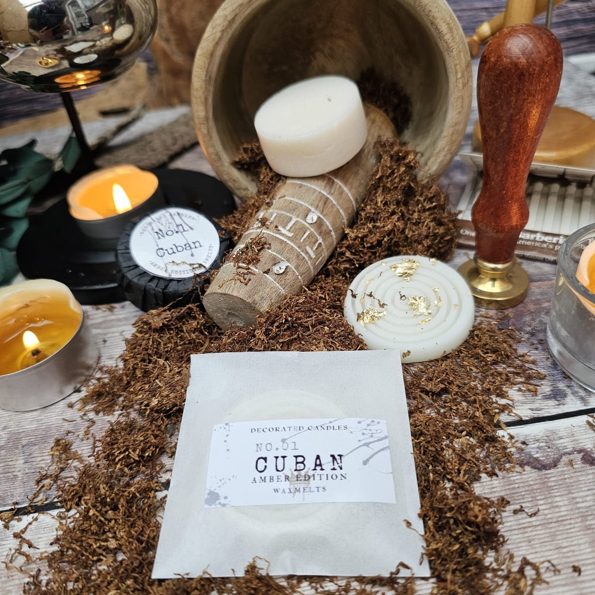 No.1 “Cuban” The aromatic notes of vintage cologne led to a heart of rich, sweet tobacco, warm spices and a hint of cognac. Smoky oak, ebony and incense wood combine with dark musk to complete this fragrance.