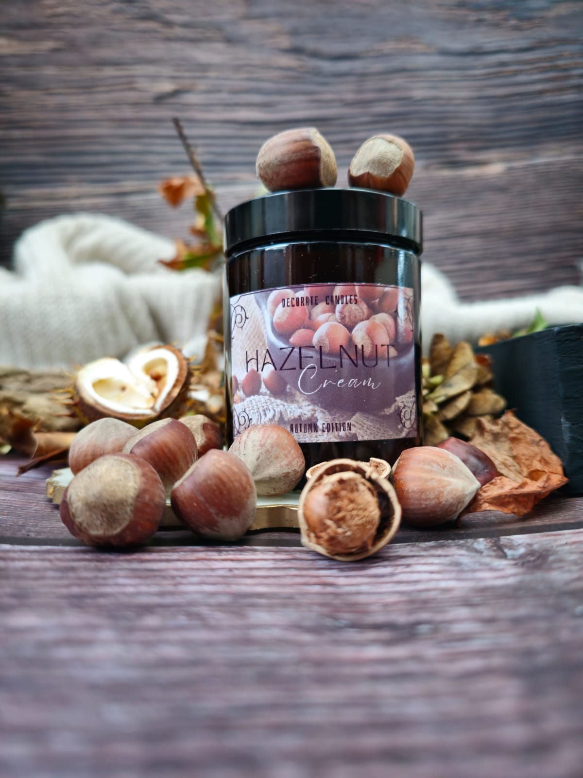The “Hazelnut Cream” autumn candle is a real feast for the senses. Its fragrance notes consist of intense walnut and hazelnut, which create a deep, warm aroma. Additionally, you can feel notes of caramel, which add sweetness and delicate smoothness. Vanilla adds depth and sweet aroma, and roasted coffee beans introduce notes of distinct bitterness to the composition. This candle wonderfully combines the warmth of nuts with rich accents of sweetness and delicate bitterness, creating an extremely pleasant and enveloping aroma perfect for an autumn evening.