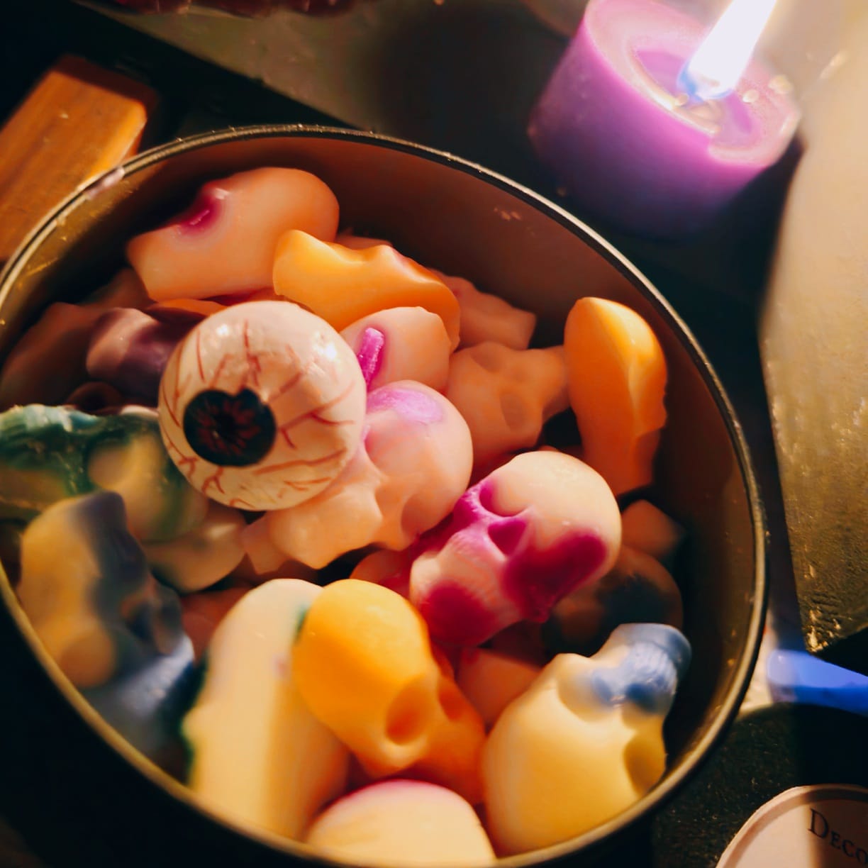 The Halloween candle “Ouija” is an extraordinary fragrance mixture that evokes associations with supernatural phenomena and mystery. You can feel the intense aroma of leather, which adds a note of dark elegance. Oud, the precious and deep scent of agarwood, gives the composition sensuality and mystery. Pink pepper adds a slightly spicier note, while incense brings a smoky, mystical atmosphere to the composition. Ylang-ylang adds notes of sweetness and exoticism, creating a contrast with elements of smoke and fear. The entire composition creates an extraordinary, mysterious atmosphere, perfect for Halloween.