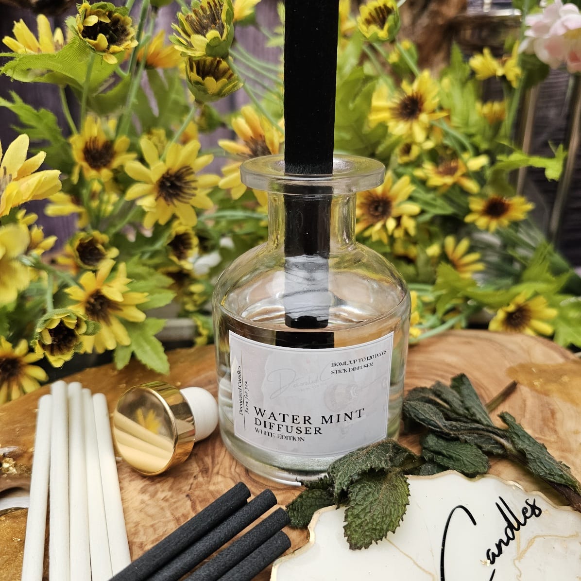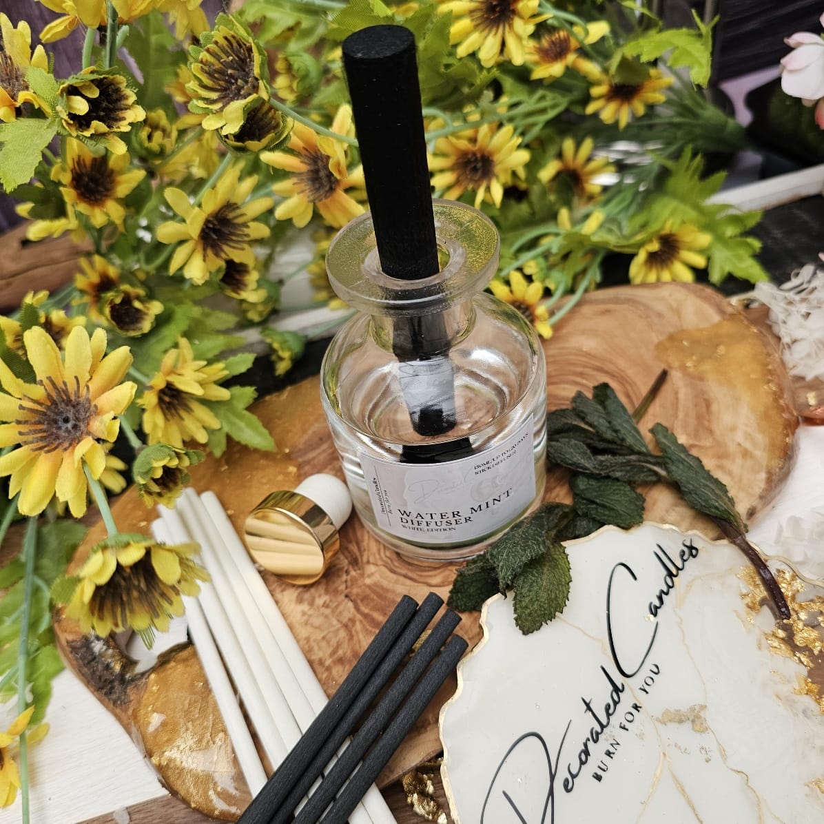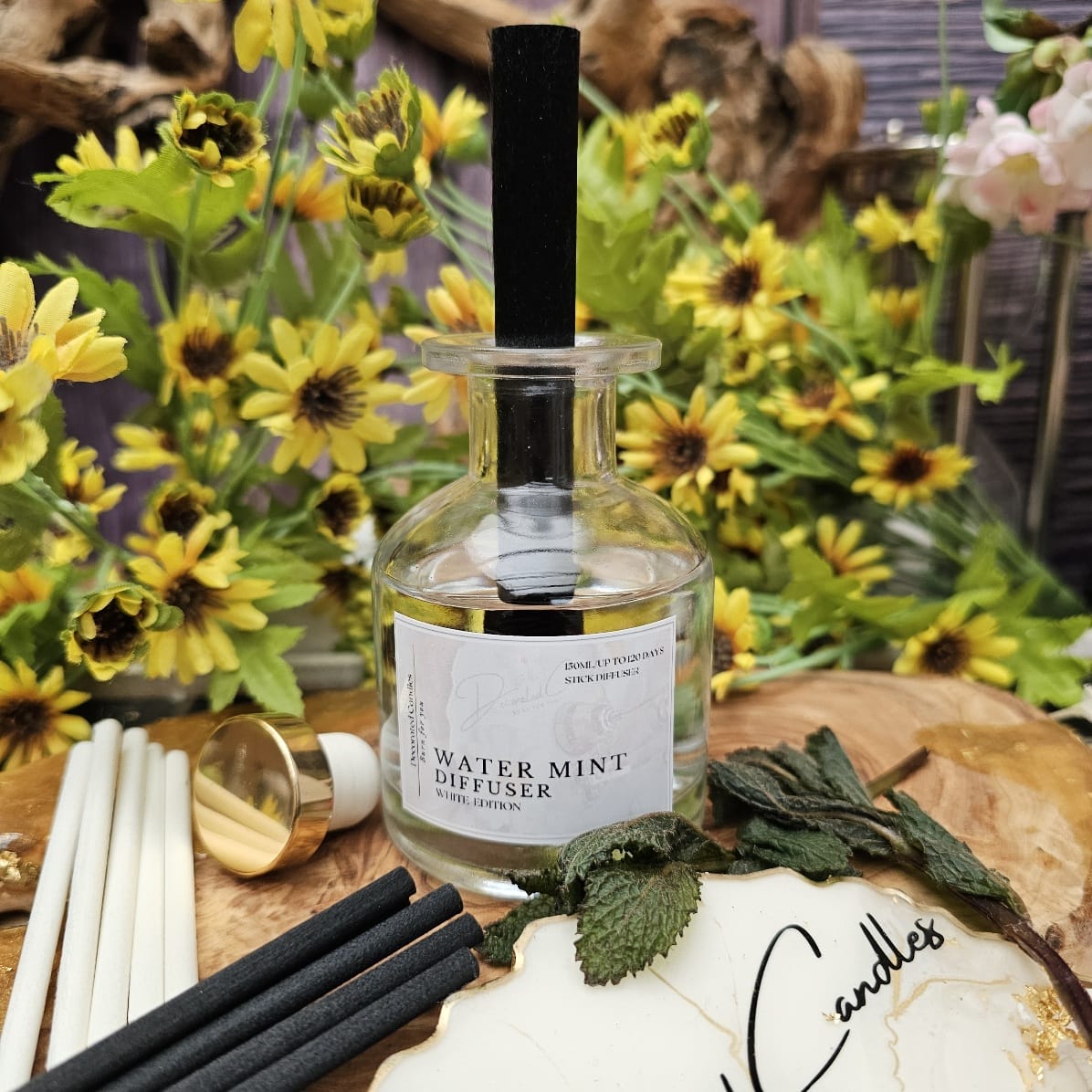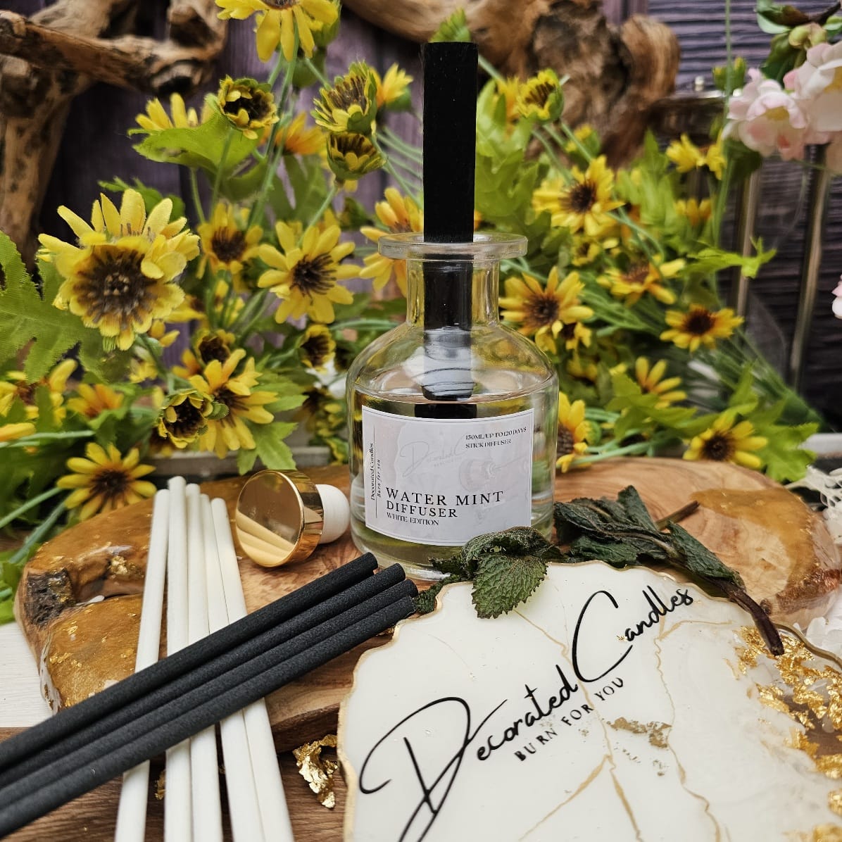 The “Water mint” diffuser is a combination of fragrance notes that are intended to create an atmosphere of peace and harmony with nature. Its unique aroma takes us to a summer garden, where the aromas of fresh mint and juicy cucumber gently envelop the senses, introducing a state of deep relaxation. At the heart of the composition, we discover notes of delicate lily and juicy melon, which adds subtlety and a sweet, fruity character to the candle. The whole thing is based on green grass, which adds naturalness and freshness to the mixture. It is a perfect choice for people looking for solace and relaxation surrounded by natural, green scents. The Water Mint” diffuser will make you feel like you are surrounded by an idyllic, peaceful oasis of greenery and freshness.