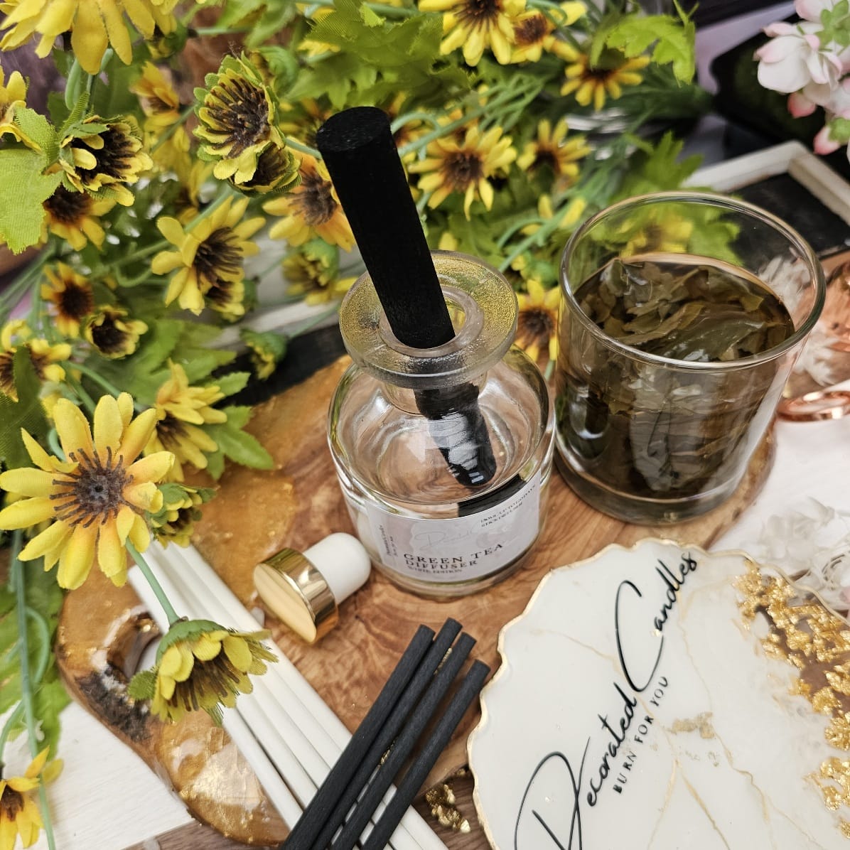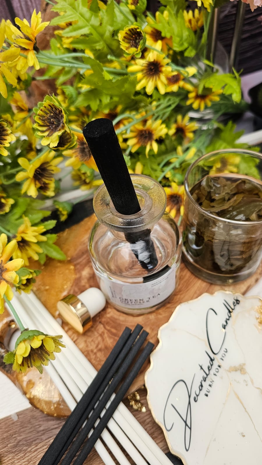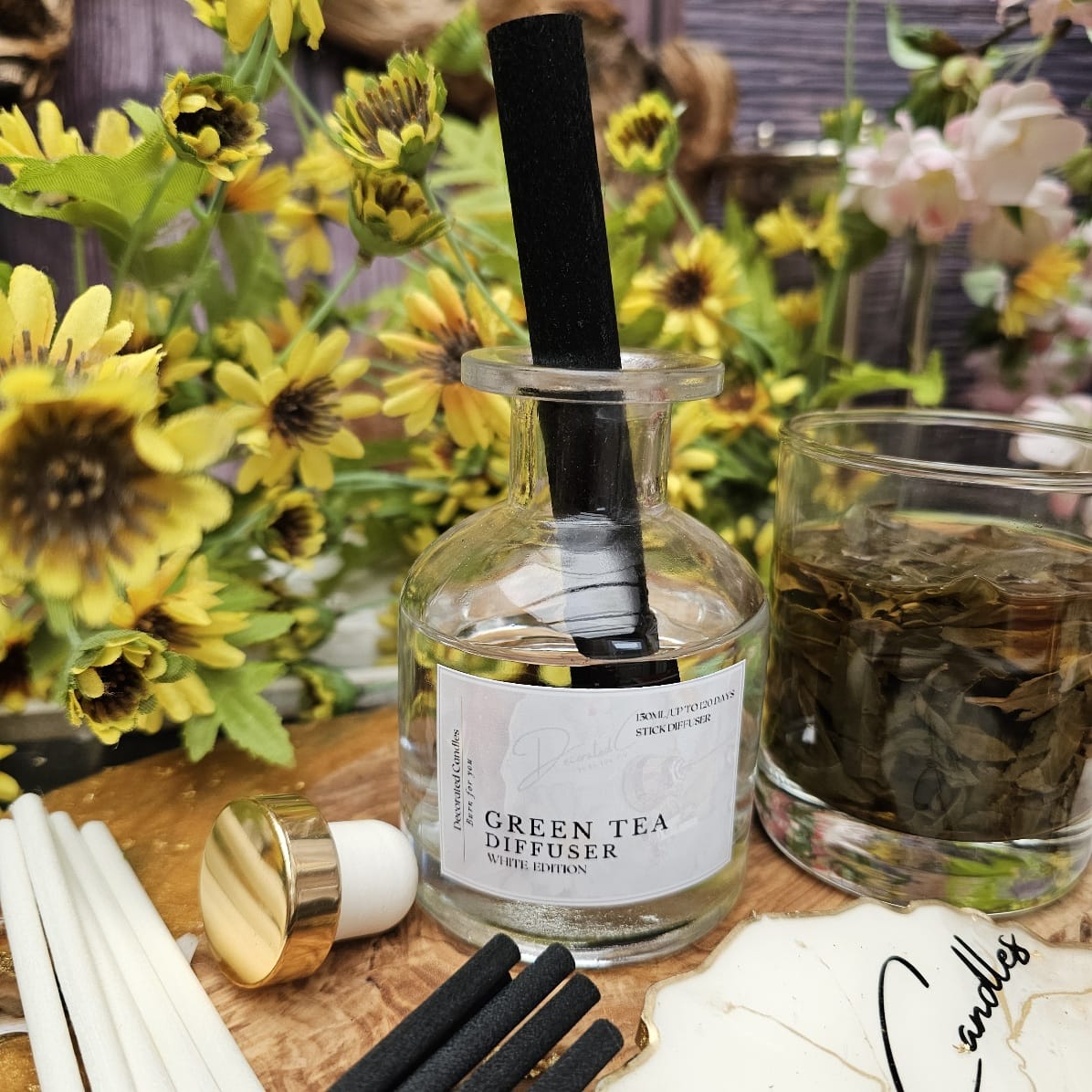 The Green tea-scented diffuser has inspiring notes of rhubarb giving it freshness, while mint adds a refreshing character. The scent of tea gives it a subtle, soothing aroma, and notes of orange and bergamot add delicate sweetness and juiciness. The addition of the scent of moss creates a note of greenery and gives the candle a cool and natural aroma.All this makes the scent of green tea soothing, refreshing and relaxing, reminiscent of aromatic moments spent in a quiet garden with a cup of tea in your hand.