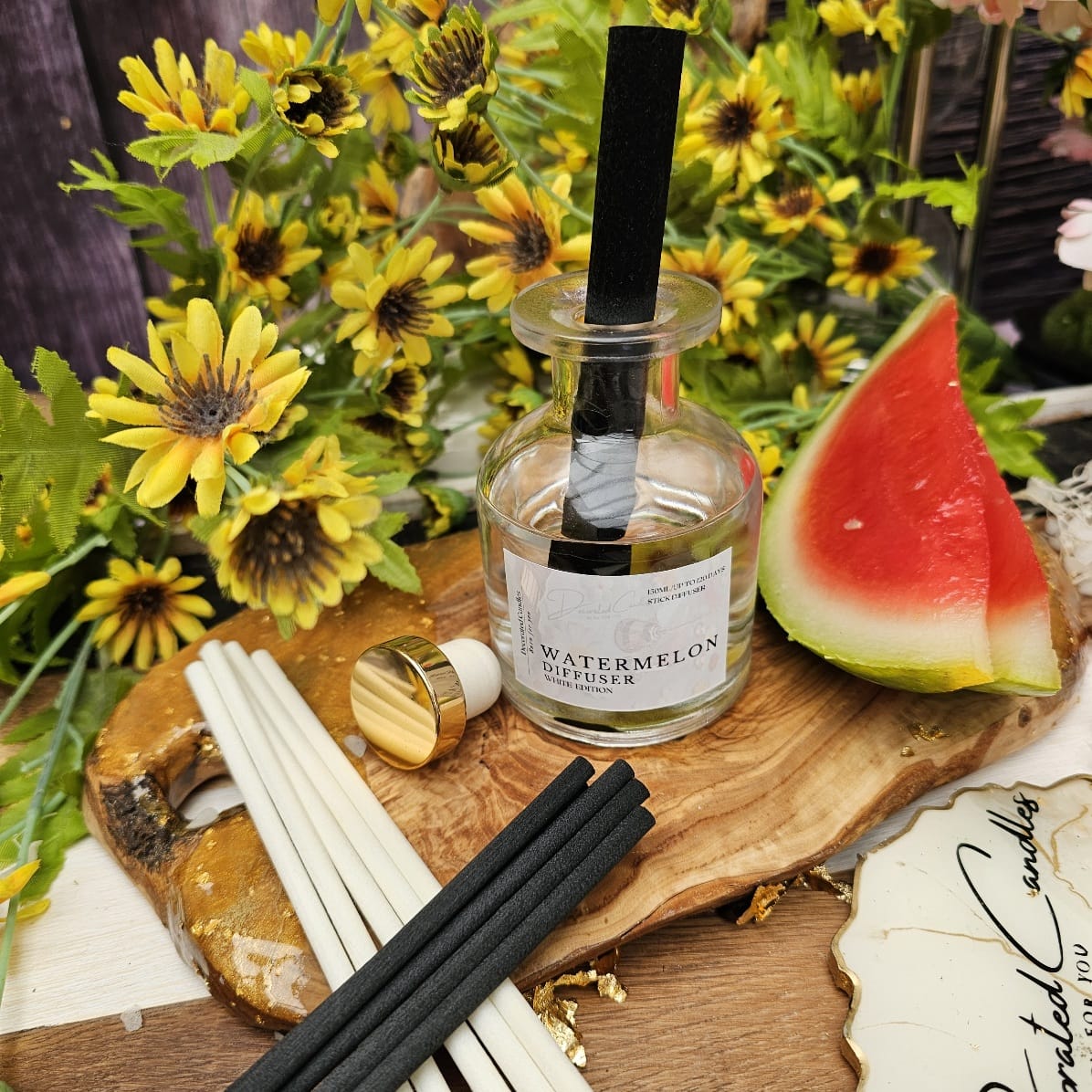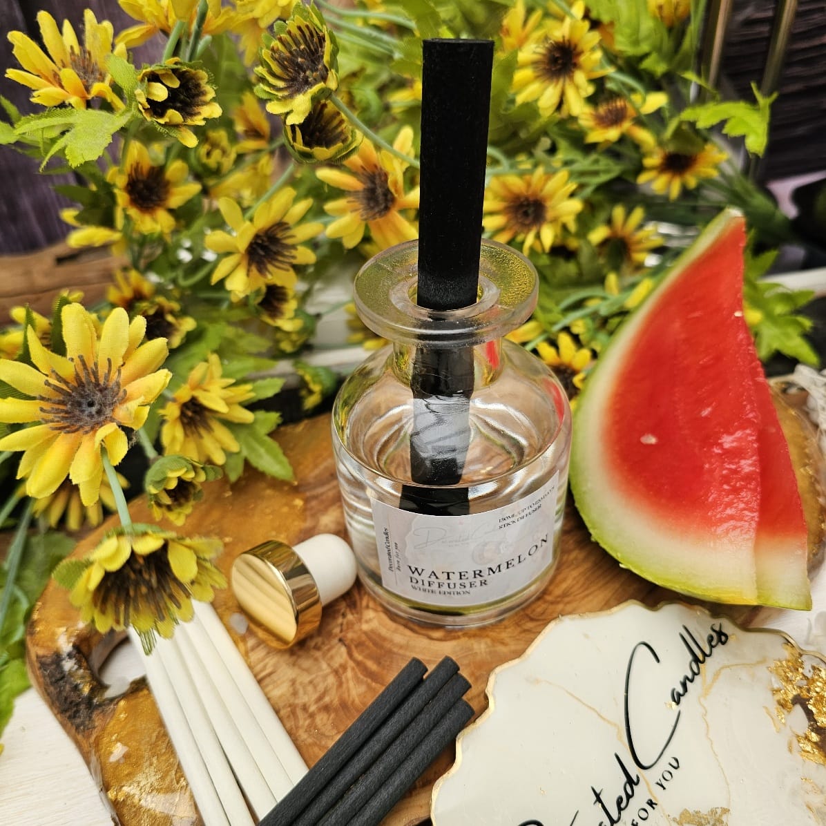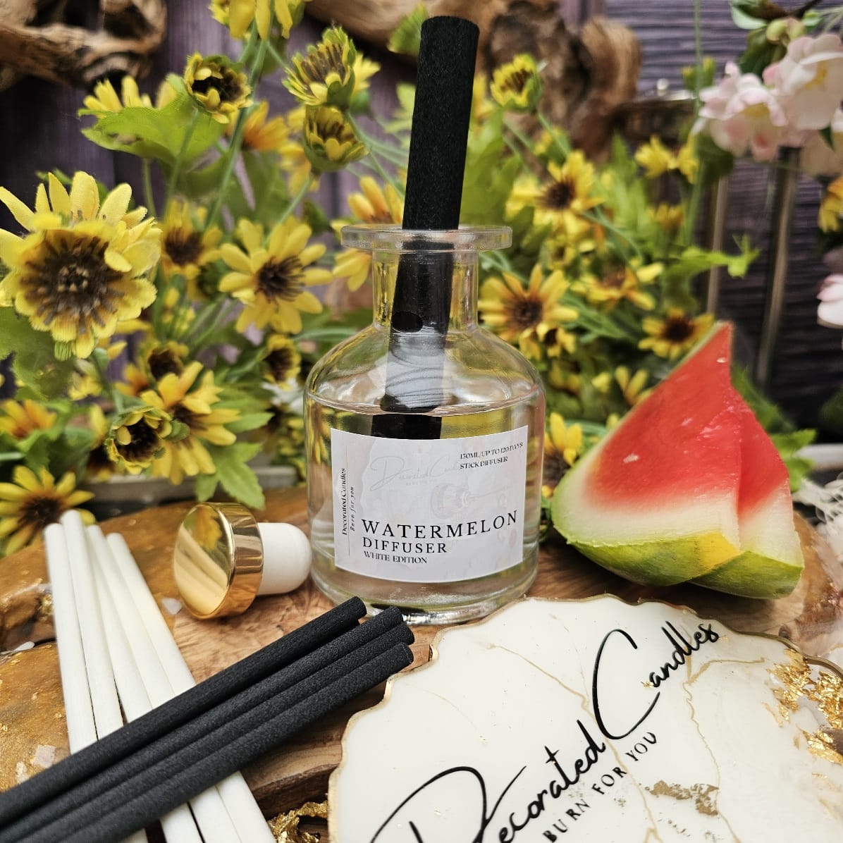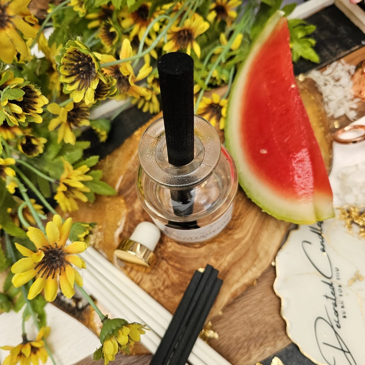 The “Watermelon” diffuser is the essence of summer and refreshment, which takes us to summer days full of sun. Its unique aroma stimulates the senses and adds energy, creating an atmosphere of refreshment and a joyful mood. The top fragrance notes include the essence of juicy melon and the delicate scent of rose water, which gives the candle’s originality and subtlety. At the heart of the composition, we discover aromatic watermelon, which adds sweetness and juicy character. The whole thing is based on fruity kiwi and sweet brown sugar, which gives the mixture depth and warmth. It is a perfect choice for people looking for refreshments and a pleasant scent that will take them into a summer mood and provide a relaxing atmosphere during long summer evenings. The “Watermelon” diffuser will make you feel like you have a piece of summer in your own home.