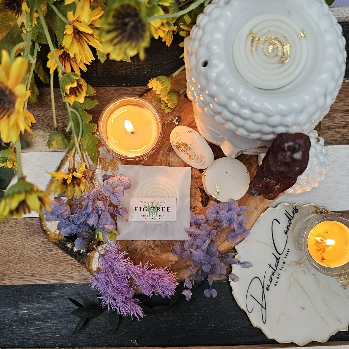 The “Fig Tree“ scent waxmelts a combination of intense and fresh scents. Fragrance notes of lime give it freshness and energy, while fig leaf and fig add delicate sweetness and greenery. The addition of sandalwood enriches the composition with warmth and depth. The whole makes the scent of the fig tree waxmelts intense, refreshing and sensual, reminiscent of a summer afternoon spent in a garden full of ripe figs.